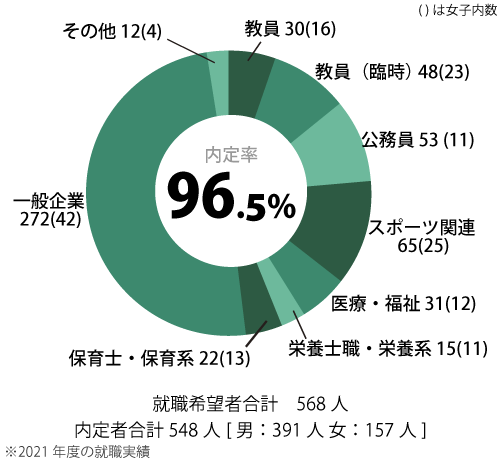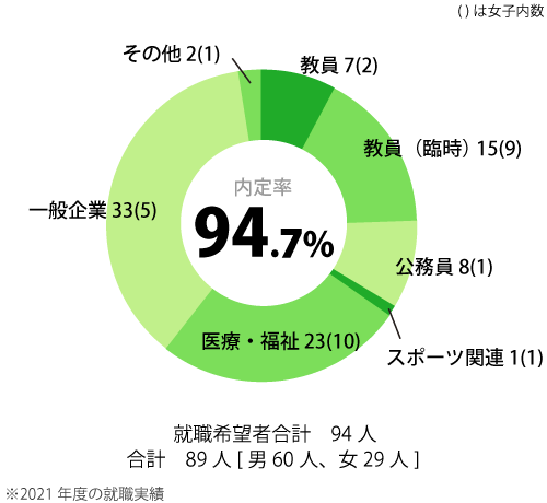 ※ 2024年度の留学生:1名の就職実績あり(就職率100%)