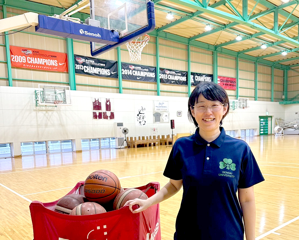 仙台大明成男子バスケットボール部で、栄養サポートを担当する菅原助手。