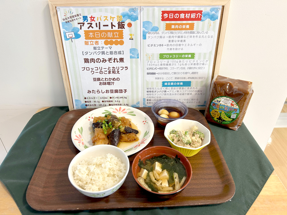 仙台大明成高校食文化創志科と連携し、アスリート向けに考案された「アスリート飯」