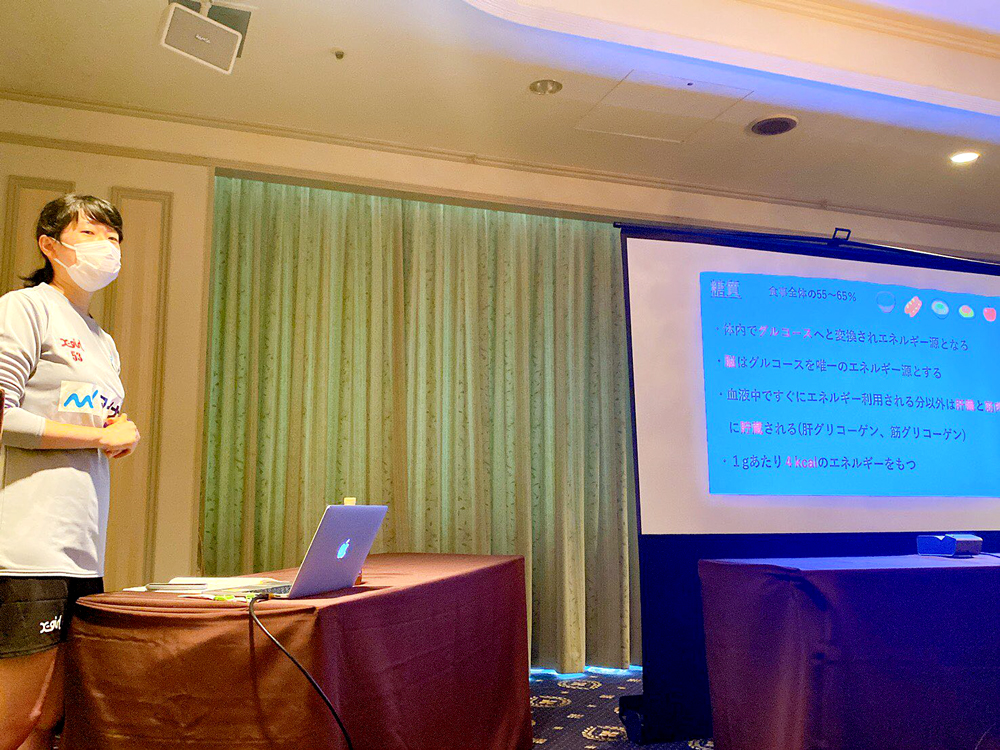 マイナビ仙台レディースの選手に向けて、栄養セミナーを実施する様子(2020-21SEASON当時)