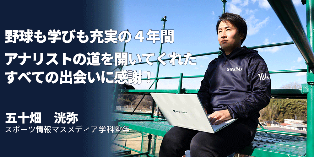 さらに、スポーツ情報マスメディア学科では、アナリストになるための実践的な学びができることを知り、「学んだことをグラウンドですぐに活かせる。一挙両得の環境」と感じ、仙台大学への進学を決意した。