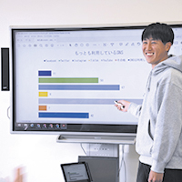 将来の目標は、スポーツを通して地元を盛り上げること。地元でプロサッカーチームの試合が行われたとき、地元や観客たちが盛り上がっている様子を見て、自分はその“楽しさ”を支える立場になりたいと思いました。スポーツマーケティング論では、マーケティングの基本や市場とスポーツの結びつきについて学んでいます。難しい部分もありますが、将来に役立つ科目なので楽しく取り組んでいます! |