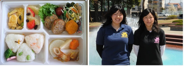 2人のレシピを元に、弁当づくりは学生食堂を委託しているシダックスが担当し、運動栄養学科の学生20名も当日の早朝6時から盛り付け等の手伝いを行って、1400個のお弁当を用意しました。