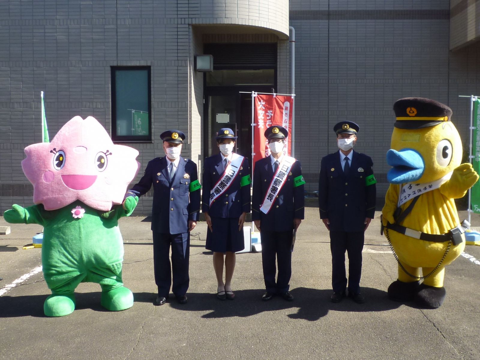 10月16日(金)本学学生の武者香織さん(体育4年)と千葉隆人さん(スポーツ情報マスメディア4年)が宮城県警大河原警察署から一日警察署長として委嘱され、同日、フレスコキクチ柴田店で警察職員と一緒に特殊詐欺等被害防止を呼び掛けるチラシ等を配布し、広報啓発活動に力を注ぎました。