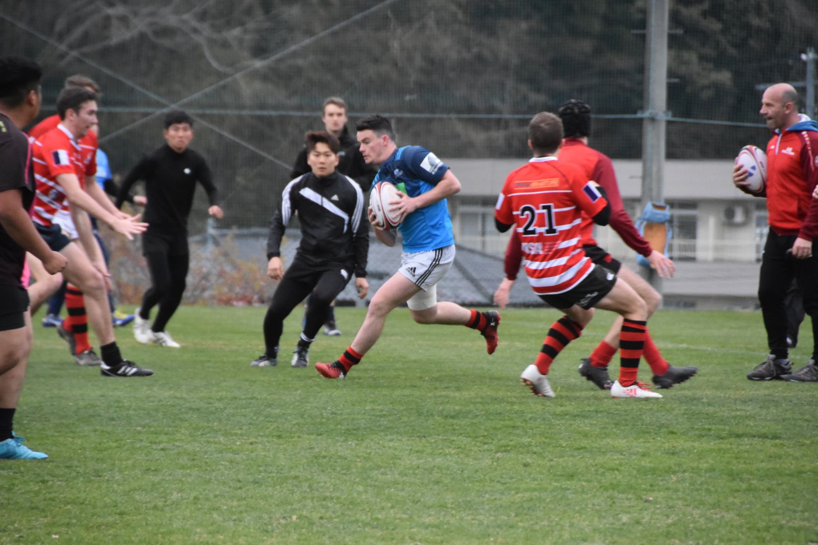 4月17日(火) 仙台大学 第2グラウンドにてフランス研究教育機関国立応用科学院リヨン校ラグビー部38名と本学ラグビー部6名、東北医科薬科大学ラグビー部3名、仙台高校ラグビー部18名の合同トレーニングが行われました。