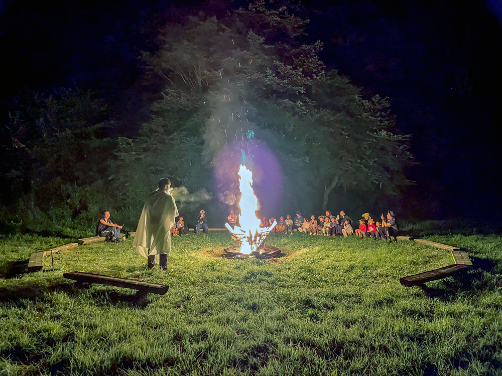夜には待ちに待ったキャンプファイヤーを実施。学生たちが準備したゲームや歌、ダンスで盛り上がり、宿泊プログラムならではの特別な夜を過ごしました。