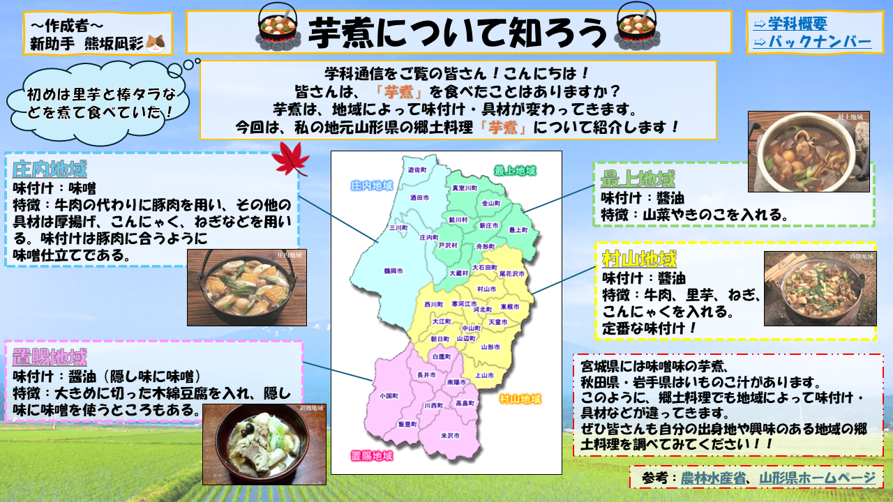 今回のスポーツ栄養学科通信は、「芋煮について知ろう!」です。