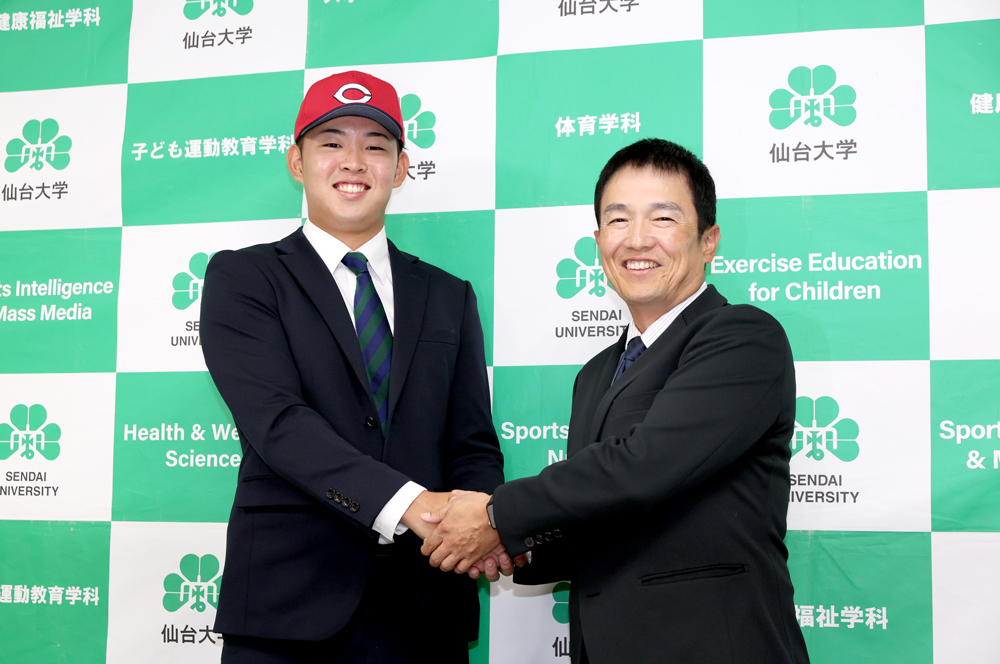 本学出身でプロ野球ドラフト会議において指名を受けた選手は、今回の両選手を含めて通算11人となりました。仙台大学硬式野球部からのプロ入りは、地域に夢と希望を与える新たな一歩となるでしょう。
