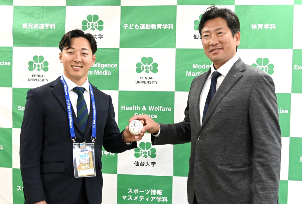 小松聖スカウトは「渡邉投手は大きな可能性を秘めた投手です。育成からのスタートとなりますが、チャンスを活かして、先発に限らず中継ぎや抑えなどにも挑戦してほしい。仙台大の先輩である宇田川も在籍しており、チームにも溶け込みやすいと思います」と期待を寄せました。