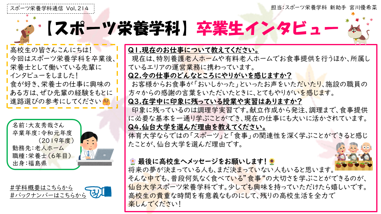 vol.227 「スポーツ栄養学科 卒業生インタビュー」