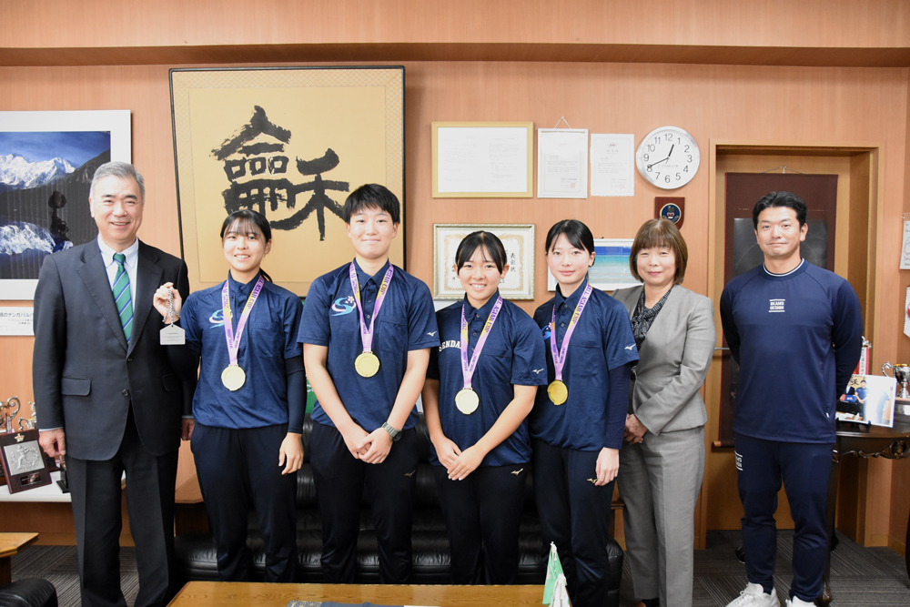 この優勝を受け、11月11日には、日本代表に選出された4名の選手らが髙橋仁学長を訪問し、大会結果を報告しました。