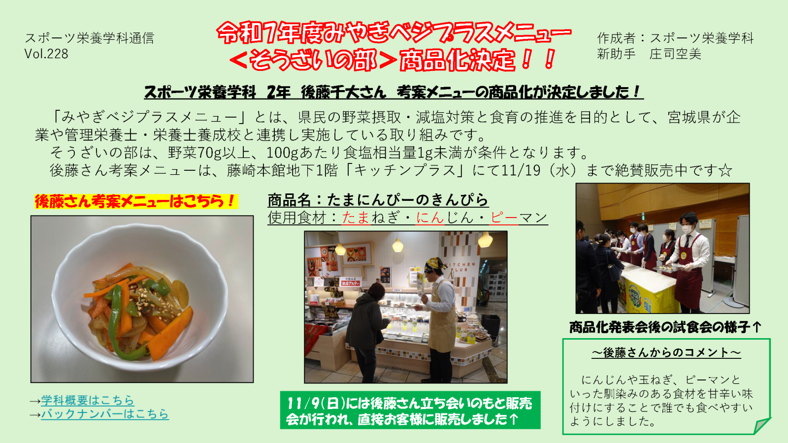 今回のスポーツ栄養学科通信は、「みやぎベジプラスメニュー商品化決定!」です。