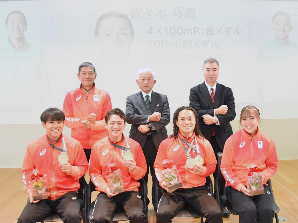 報告会では佐々木選手が「応援のパワーだけで走ることができた。本当に有難かった。それがあったからこそ金メダルにつながった」と感謝の言葉を語りました。また、村田選手は「先輩から“大丈夫”という言葉をもらい、プレッシャーが軽くなった。デフ競技が福祉ではなくスポーツとして見てもらえたことが嬉しかった」と話しました。