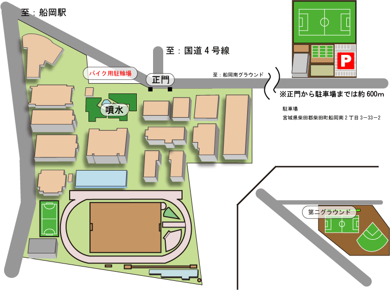 所定の駐車場(下図参照)をご利用ください。近隣の方のご迷惑とならないよう、交通ルールを厳守してください。