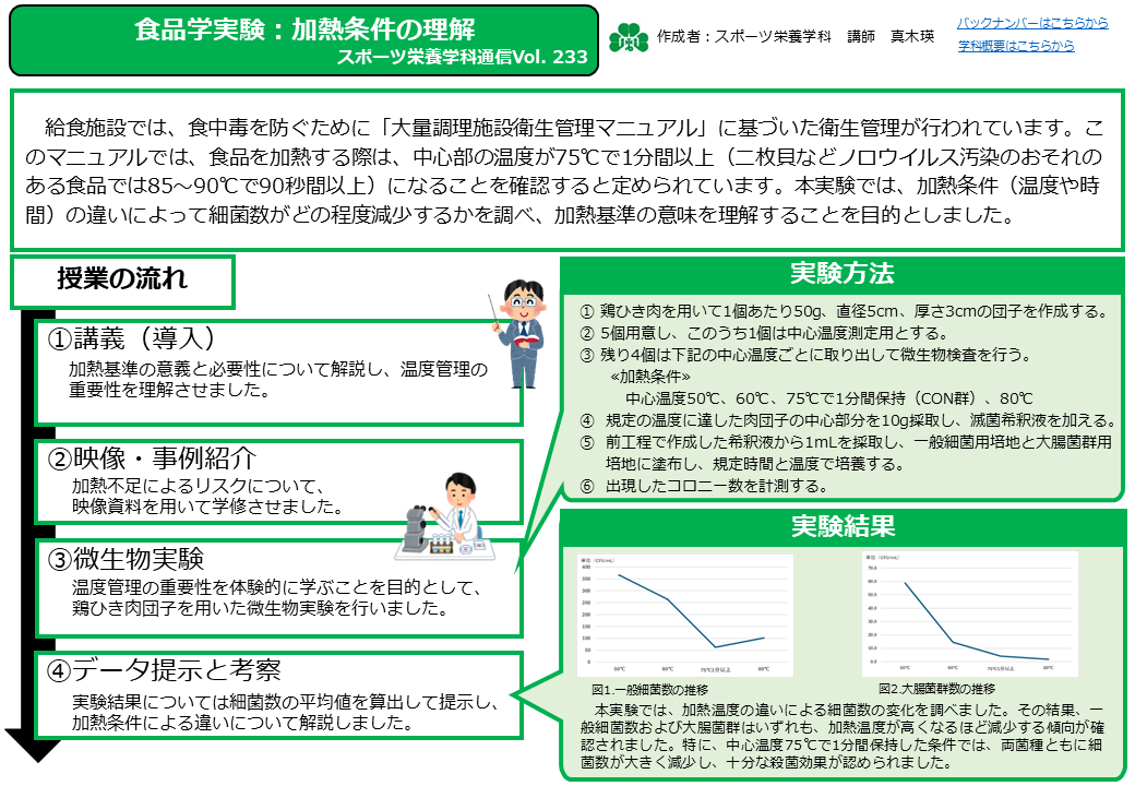 今回のスポーツ栄養学科通信は、「食品学実験:加熱条件の理解」です。