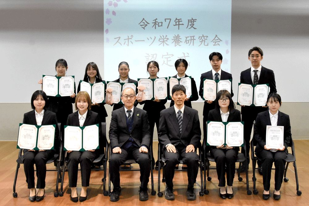 鈴木副学長から「スポーツにおける栄養は、競技力向上を支えるだけでなく、心身の健康を維持し、持てる力を最大限に発揮するための重要な基盤となります。皆さんがこれまでの学びや実践を通して専門的な知識を身に付け、今回の認定に至ったその努力に心から敬意を表します。今後もさらに学びを深め、現場で活躍されることを期待しております。」と挨拶し、今後の活躍に期待を寄せました。