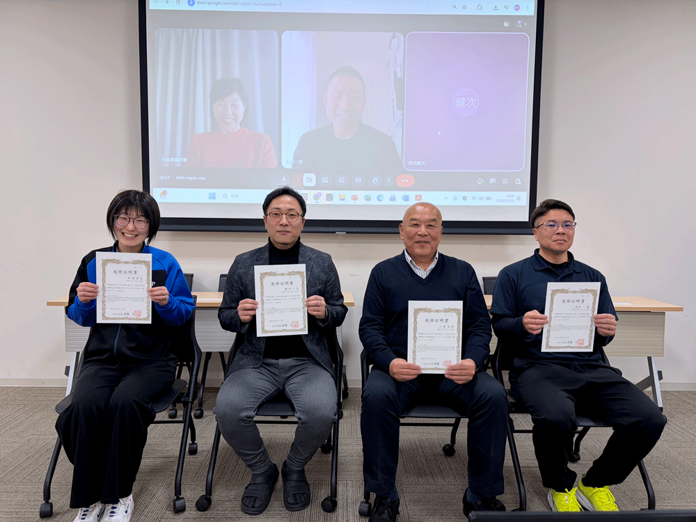 その後の修了式では、プログラムのコーディネーターである原田健次客員教授より、受講者に履修証明書が授与され、これまでの学びの成果が形となりました。