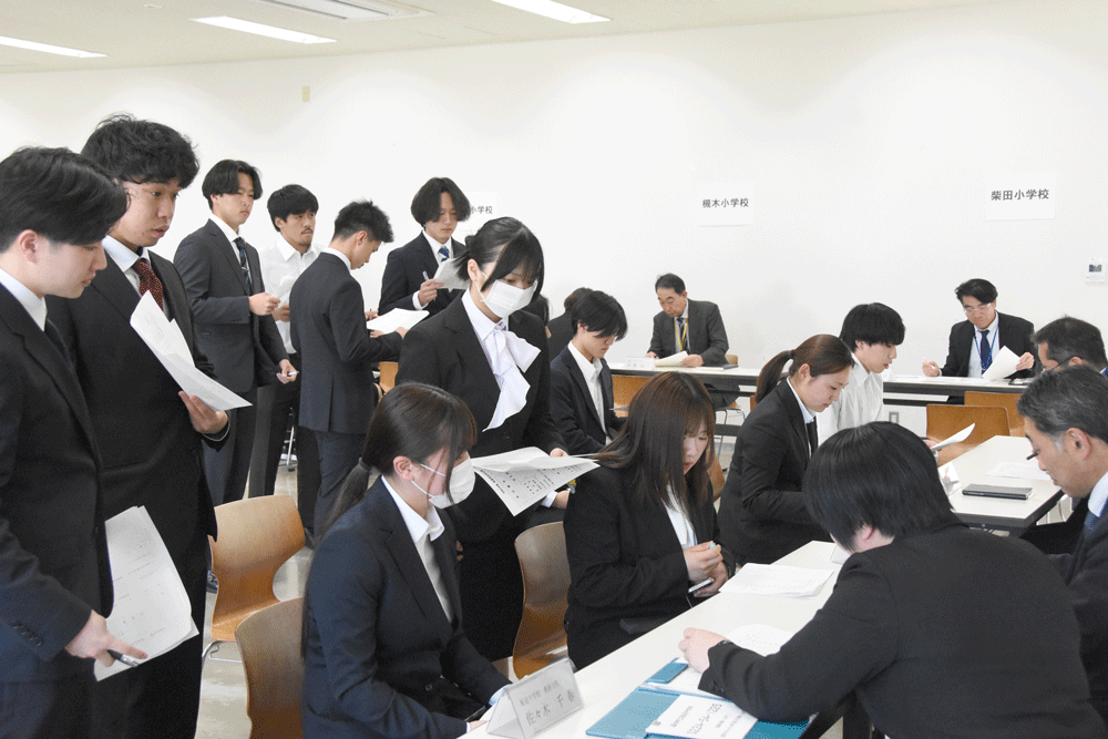 各小中学校の先生方と仙台大生による「未来先生」の申込書作成のための面談の様子