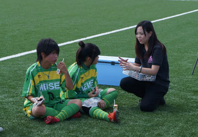 「試合期の食事」や「水分補給」とテーマを設定し、パワーポイント等を用いて栄養教育を行います。学んだ知識を選手に伝えることでプレゼンテーション能力やコミュニケーション能力の向上につながります。 また、活動を行う場合は計画書や報告書を作成します。作成することで活動の目的を明確にし、実施した活動の評価を行うことができます。食事・補食提供